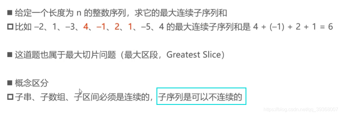 穷举出所有可能的连续子序列,并计算出它们的和,最后取它们中的最大值