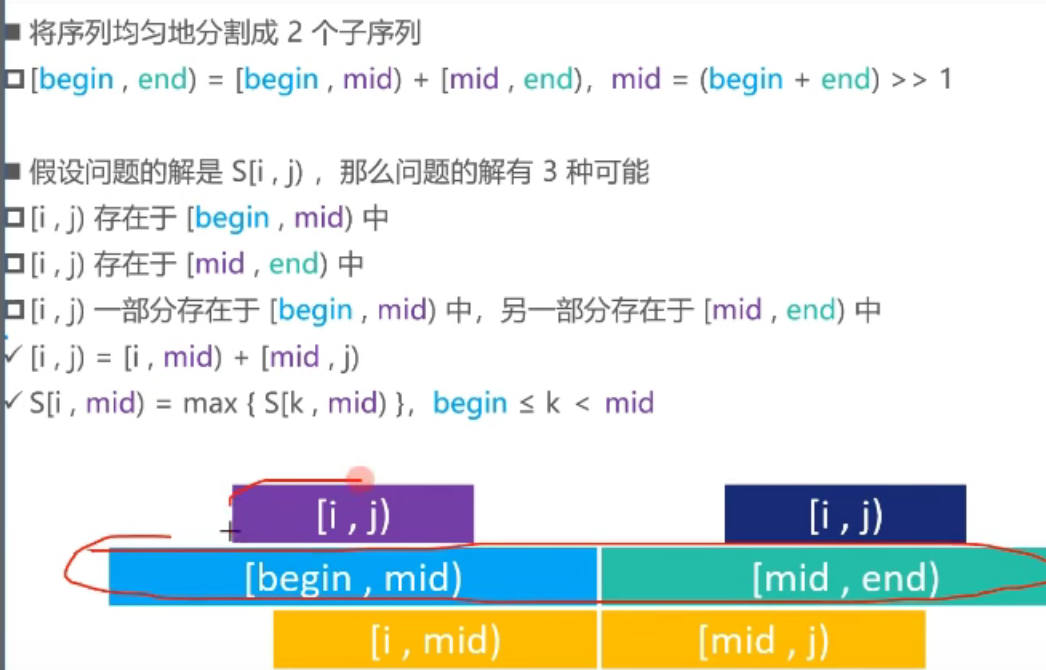 class Solution { public int maxSubArray(int[] nums) { if (nums == null || nums.length == 0) return 0; return maxSubArray(nums, 0, nums.length); } static int maxSubArray(int[] nums, int begin, int end) { if (end - begin < 2) return nums[begin]; int mid = (begin + end) >> 1; int leftMax = Integer.MIN_VALUE; int leftSum = 0; for (int i = mid - 1; i >= begin; i--) { leftSum += nums[i]; leftMax = Math.max(leftMax, leftSum); } int rightMax = Integer.MIN_VALUE; int rightSum = 0; for (int i = mid; i < end; i++) { rightSum += nums[i]; rightMax = Math.max(rightMax, rightSum); } return Math.max(leftMax + rightMax, Math.max( maxSubArray(nums, begin, mid), maxSubArray(nums, mid, end)) ); }}
